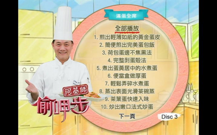 阿基師偷呷步-滿蛋全席(蛋料理)國廚阿基師歷年煮菜小秘訣 國語發音繁體中文字幕版(DVD一片裝)